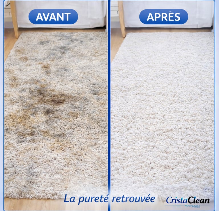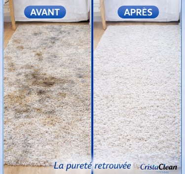 Chez CristaClean, nous proposons un nettoyage de tapis professionnel en profondeur, efficace contre les taches incrustées, les mauvaises odeurs et les allergènes.