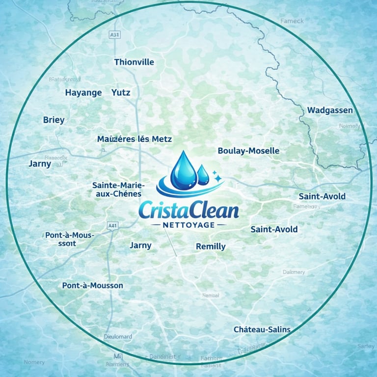 En tant qu’entreprise de nettoyage, nous intervenons en Moselle et Meurthe-et-Moselle. Globalement, nous nous déplaçons jusqu' à 40 Km autour de Metz.